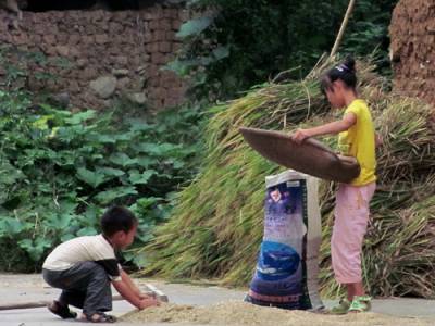 > 小移民帮忙抢收稻谷