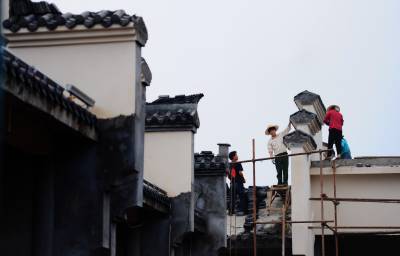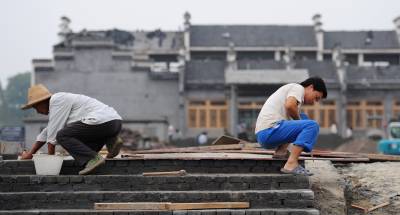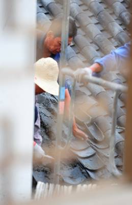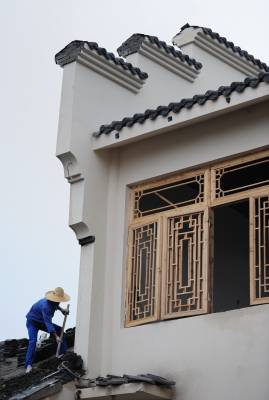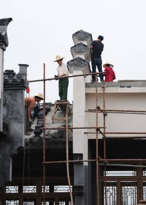 潜江复建曹禺祖居9月5日,工人在潜江市”梅苑”中的曹禺祖居建设工地施工。今年适逢中国现代话剧的奠基人、著名剧作家曹禺先生诞辰100周年。曹禺故里潜江市开工建设以展示中国戏剧文化为主题的园林”梅苑”,并按照当地史料记载,在”梅苑”中复建占地约44亩的曹禺祖居。本报视界网吴燕军通讯员刘志丹摄