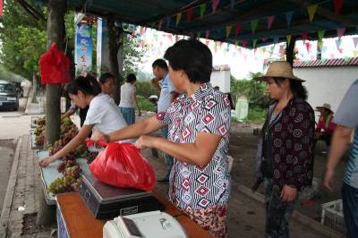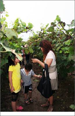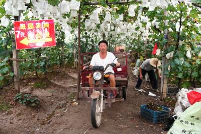 9月5日,鄂州市鄂城区燕矶池苑葡萄专业合作社采摘区内人气旺盛。年轻的黄州夫妇驾车路过鄂城燕矶,一家三口,见到园区门口诱人摊位葡萄,随即停车。经询问后,带着小孩自己入园采摘。在引导员的陪伴下,收获着葡萄。据了解,鄂城区燕矶池苑葡萄专业合作社种植的葡萄今年喜获丰收。300余亩的种植面积,品种多样。其中的巨峰葡萄属中熟品种,深受市场青睐。吴风平摄2010.9.5