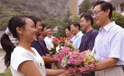 9月7日,教师节前夕,竹山县柳林中学初三同学采来山花献给老师,并深情地道一声老师辛苦了。在当日收到鲜花的教师中,有扎根山区25年的老教师,还有从城里支教的大学生。本报记者熊海泉