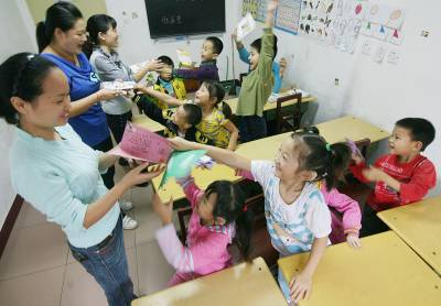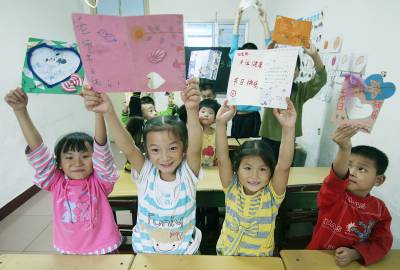 在第26个教师节来临之际,昨(7)日,荆门市聋儿语训部组织60余名聋哑儿童举行了一次”老师,节日快乐”的主题班会,聋哑儿童们将自制的贺卡送给老师,表达对老师的节日祝福和感恩之情。(本报视界网宁新生摄)