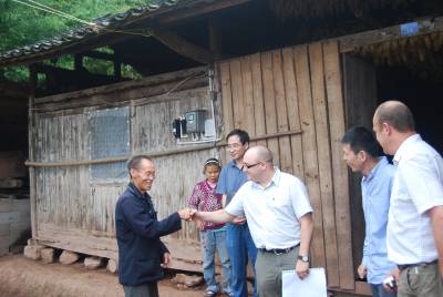 9月6日,英国克里柏有机茶公司的马克先生、旦尼尔先生,实地考察了宣恩县伍家台贡茶总公司利用国际公平贸易基金援建的宣恩县板场金龙坪村的有机幼龄茶园(图一)、板场卫生院(图二)。当天,伍家台贡茶总公司设点现场发放国际公平贸易基金39320元(图三),为844名村民解决参与新农合资金、援助15名新生上大学。据介绍,1996年以来,伍家台贡茶总公司利用向英国克里柏有机茶公司等外国客户出口有机茶,而获得外国客户返还的”国际公平贸易资金”104万元,援建该公司所在地农村新修乡村公路20公里,新建茶园60亩,改善了农村卫生事业,资助了贫困户贫困学生。该公司资助的板场白虎山村五组特困户石发坤家,玉米挂上了堂屋,生产生活艰难得到缓解(图四)。(签约摄影师汪盛华)