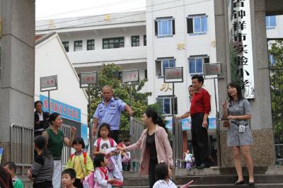 9月7日下午,钟祥市实验小学校长、党员、教师、保安齐上阵分,年级分批次组织学生放学。该校处于三校交汇处,人流和车流量大,交通隐患突出,开学以来,他们采取领导、党员、教师齐上阵的方式引导学生出校,疏导家长和交通,消除交通安全隐患,保障学生安全。