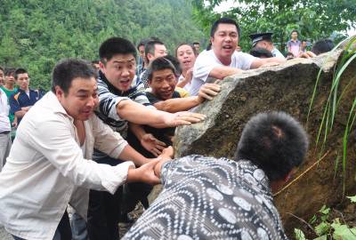 2010年9月7日,十几名司机在合力搬开一块巨石。当日下午3时许,209国道湖北省恩施土家族苗族自治州宣恩县境内发生地质滑坡,导致交通中断,近百辆汽车被滞留在国道上。为了尽快疏通道路,在当地一名警察的协调下,司机纷纷下车搬运石块,仅用了半个小时就疏通了道路。