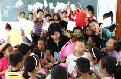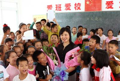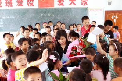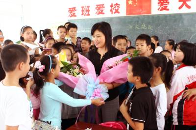 校园里的”大明星”8日(教师节前夕),京山县实验小学四(一)班的学生手捧鲜花,手拿笔记本,向刚刚获得全县”十佳优秀教师”他们的语文教师---黄生慧献花,纷纷找她签名。今年42岁的黄生慧从教20多年,对学生始终如慈母一般,在课堂上注重绿化、诗化、活化的讲演,形成了自己独特的教学风格,深受学生和家长们的爱戴。她先后被评为第四届”荆门名师”、第三届荆门语文”学科带头人”、湖北省”骨干教师”等各项荣誉。本报视界网李凯摄