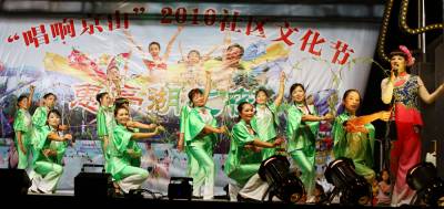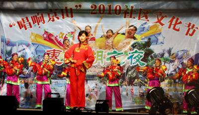 ”唱响京山”社区文化节开幕9月7日晚,”唱响京山”2010社区文化节在京山县文峰网球公园隆重开幕,晚会囊括了由社区居民们表演的舞蹈、秧歌、湖北大鼓和快板等丰富节目,吸引了千余多名市民前往观看,现场掌声阵阵。在接下来的一个月,还将有多场社区文化活动在各社区轮番献演,为城区居民奉上丰富的精神大餐。图为新市镇文笔峰社区居委会的群众在表扬歌舞。本报视界网李凯摄