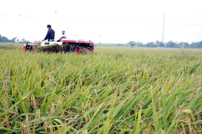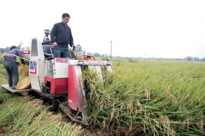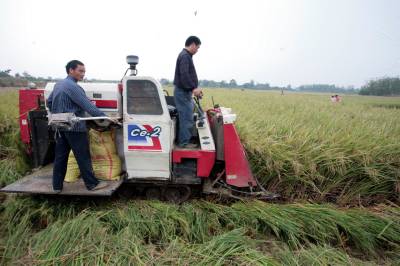 > 枝江机械抢收中稻