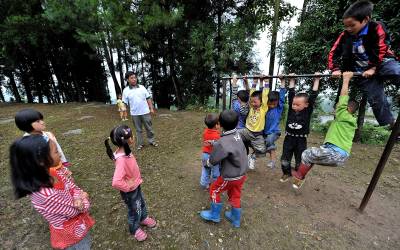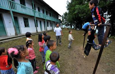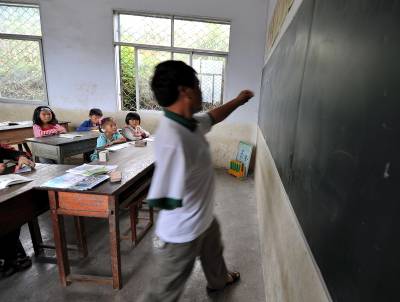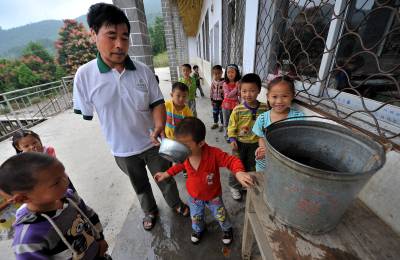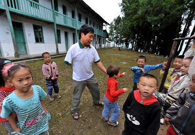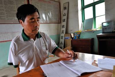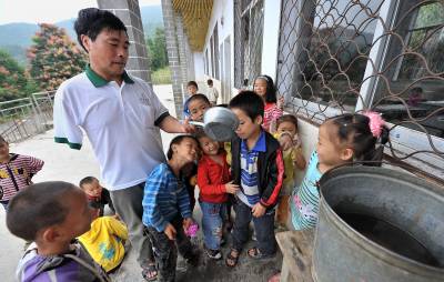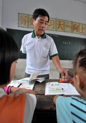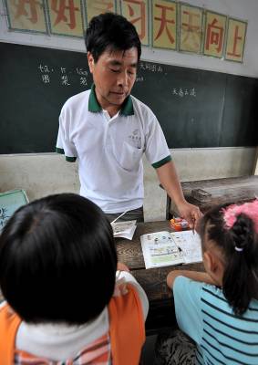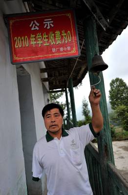 9月9日,在教师节来临的前一天,胡万银进了一趟县城,花130元钱为学校的共3名老师买回了一个热水器。为了给学校节省5元钱,胡万银跟电器行老板足足磨蹭了半个小时。胡万银是湖北省恩施土家族苗族自治州宣恩县珠山镇铁厂坡村小学校长,年轻时不幸失去了右手,妻子生活在农村。1976年,胡万银幸运的成为一名人民教师,走上了铁厂坡小学的讲台——在那张讲台上,他足足站了35个年头。今年53岁的胡万银一直在这个贫困山区的山村小学执着地坚守着。如今,因为教育资源逐步向城镇集中,这所学校只有一、二年级共20名学生。他说:”如今高年级都撤到集镇上去了,学校显得空荡荡的,原来那种有几百学生的热闹景象不会再有了,我的心里也空荡荡的。但哪怕只有最后一个学生,我都会努力教好他们,因为我的青春、我的一生,都属于铁厂坡小学”!本报视界网宋文摄