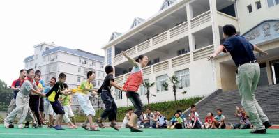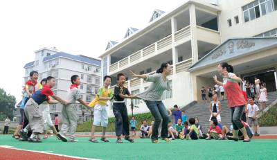 我与教师同欢乐9日,黄石市特殊教育学校的智障学生与他们的老师在校园开心地玩起”老鹰抓小鸡”游戏。为庆祝教师节,感谢老师对他们的辛勤培育,学生们以这种简单的游戏方式,向老师表达自己最诚挚的节日祝福。黄石市黄石日报摄影部邱孝威摄邮编:435002电话:13807232603