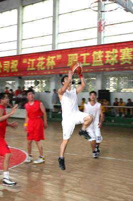 9日,嘉鱼县委代表队与文体新局代表队之间一场激烈的揭幕赛,正式拉开了该县2010年”江花杯”职工篮球赛帷幕。篮球赛是该县”第二个全民健身日”活动之一。来自该县各乡镇、各单位、各企业的15支代表队参加比赛,共赛29场。总分前三名的代表队,将分获3000元、2000元、1000元奖金。(本报视界网耿海军摄)通联:嘉鱼新闻宣传部耿海军邮编437200