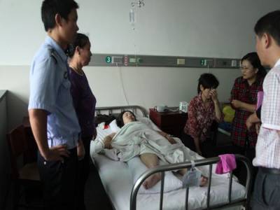 天门城区博通电器竟陵店货物吊篮坠落发生伤人事故吊篮内5名员工不同程度受伤9月9日下午4时许,天门城区人民大道博通电器竟陵店5名员工在乘坐货用吊篮时,吊篮钢索蹦断从高处坠落,造成5人不同程度受伤,伤者为三男二女。目前,三名轻伤者在一医骨科接受治疗,另有两名重在重症监护室抢救,二人仍未脱离危险。博通电器负责人表示,将尽全力救治员工。据前来现场调查的市质监局负责人介绍,此吊篮属违规安装,而且按照操作规定只允许吊运货物。事故原因正进一步调查。(本报视界网刘银斌摄)