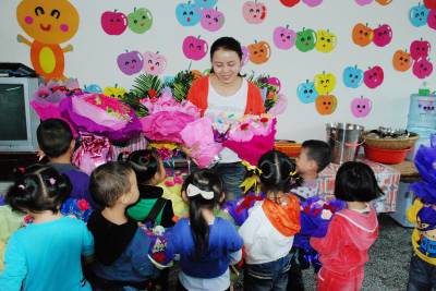 鲜花与笑脸9月10日,是我国第26个教师节,来凤县民族幼儿园的老师们一大早就收到一束束五颜六色的鲜花,这是孩子和家长送来的珍贵礼物!老师的脸上写满了笑容,也写出了人民教师无尚光荣!本报视界网唐孔琪摄通联:来凤县教育局电话:13581213418