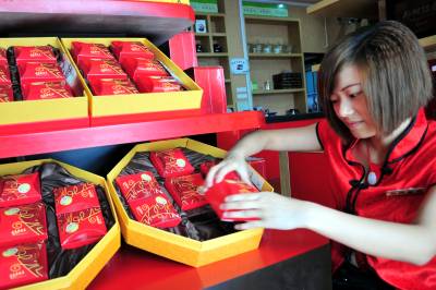 2010年中秋节将至,湖北省宜昌市各大商场、超市和门店陆续推出了月饼产品,其中特别是茶叶企业将茶月饼作为主推产品摆放在了店铺的醒目位置,提前预热了中秋佳节的团圆主题。这些茶月饼包装印上了简洁的”有茶更健康”宣传语,每盒售价从100多元至500多元不等。随着中秋节日临近,宜昌茶月饼也将渐渐走火。本报视界网张国荣摄