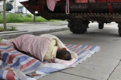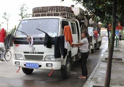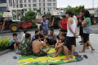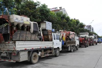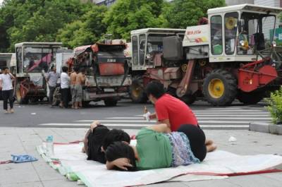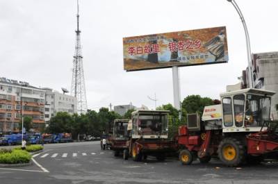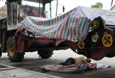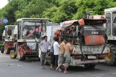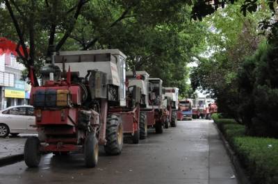 9月9日,此时正是农村收割季节,每年这个时候,有一队从北方过来的收割机队伍,因北方无水稻,此时正闲,便集队来安陆为农民收割稻谷,近日来阴雨不断,不能收割,无奈,只有停靠在河滨马路边,夜晚露宿在车底、屋檐下等待天晴。