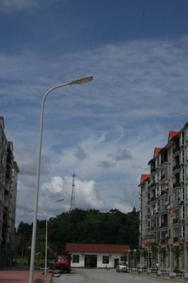 9月10拍摄于竹溪县城关镇烧田小区。当日雨过天晴,蓝天、白云、远山、高楼、宽路、路灯构成了一幅美丽画卷。