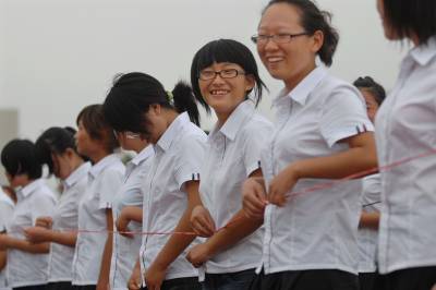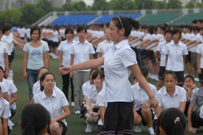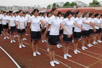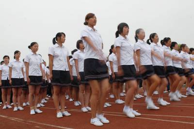 2010年9月10日,湖北经济学院,2010级新生军训。今年,该校为学生统一采购T恤、短裤裙和运动服,取代以往的军训服。短裤裙成为训练场上的一道风景。
