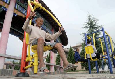 昔日泥腿子今日玩健身10日,大冶市大箕铺冷水畈村78岁的曹庭水老人正在村广场玩健身器材。据了解,该村农民自筹资金50万元,于2008年建起村里公共娱乐广场,并安装健身器材供农民锻炼。使富裕起来新农村村民也过上休闲娱乐生活。黄石市黄石日报摄影部邱孝威摄电话:13807232603邮编:435002