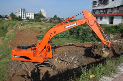 9月10日下午,北京城乡建设集团有限公司项目部的工程技术人员正在指挥挖掘机在湖北省郧县城区施工建没献珍路和中岭路升级改造工程,该工程长860米,规划道路红线宽24米,总投资880万元,这是郧县采用BT模式进行城市基础设施建设的一标段。郧县今年采用BT模式进行城市基础设施建设项目总投总20630万元,建设和升级改造老街道6条,桥梁2座,总长度13082米,行车道宽12至40米,其中采用BT模式进行城市基础设施建设的资金投入达15330万元。图为由北京城乡建设集团有限公司项目部负责的纪念原中央党校校长,理论家杨献珍命名的献珍路正在施工时的情景。周家山摄湖北省郧县城建监察大队电话13872840078邮编442500