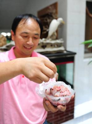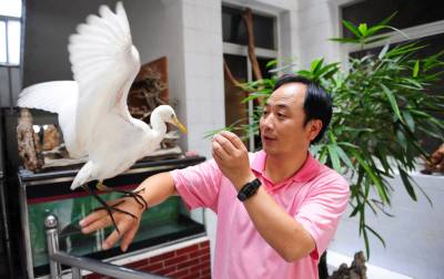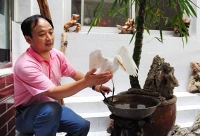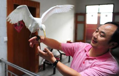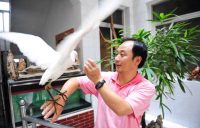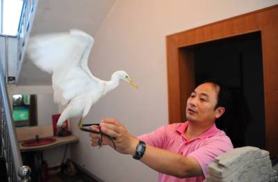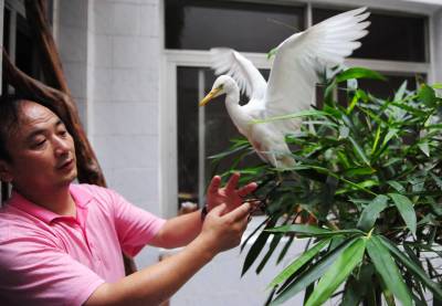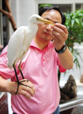 潜江市民积极爱鸟护鸟11日,湖北省潜江市教育局招办李家永在给白鹭喂食。李先生酷爱摄影,也喜欢拍鸟,前不久他在市森林公园拍鸟的时候,碰见一只受伤的白鹭奄奄一息,他将白鹭带回家精心饲养,为它疗伤,并特地买来一窝竹子为白鹭营造了一个温馨的”家”,李家永打算等白鹭完全康复后再将它放飞大自然。潜江市每年采取不同形式在社会上广泛宣传鸟类知识和野保相关的法律、法规知识。近年来,市民先后救护、放生小天鹅、猫头鹰等国家二级保护动物和豆雁等省级保护动物10余次。同时,该市相继开展了”春蕾行动”、”飞鹰行动”等活动,不仅有力地打击了破坏鸟类资源的违法行为,广大市民爱鸟、护鸟意识也得到了增强。今年该市在全省爱鸟、护鸟活动中喜获先进集体荣誉称号。本报视界网吴燕军摄