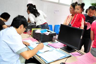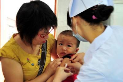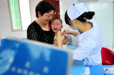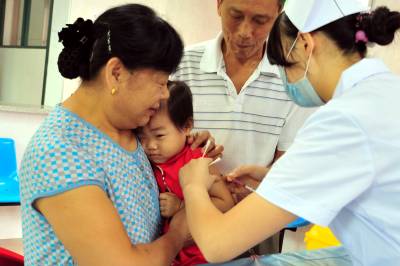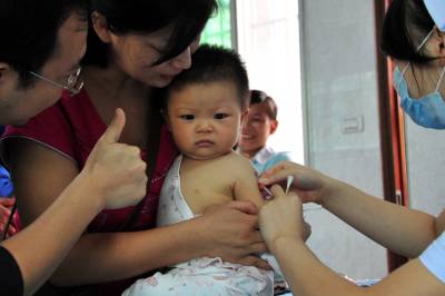 2010年9月12日,不少流动儿童在爷爷奶奶和爸爸妈妈的看护下,来到湖北省宜昌市夷陵区疾控中心,医务工作人员细心为适龄儿童接种麻疹疫苗。 9月初,宜昌市夷陵区精心培训了预防接种医务工作人员,对适龄儿童麻疹疫苗接种工作进行了全面调查摸底和广泛宣传,特别是在流动人口集中的地区通过发放宣传单、上门入户等形式提前告知,确保全区13300名适龄儿童麻疹疫苗接种不漏一人。本报视界网张国荣摄