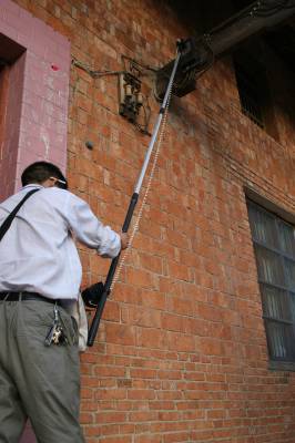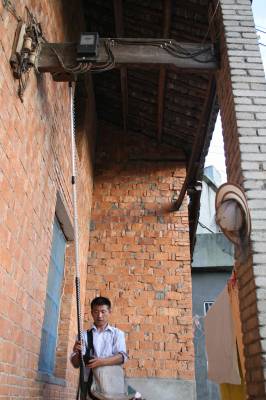 农电工有了”秘密武器”本报视界网签约摄影师颜义众:9月11日,竹溪县蒋家堰镇农电工颜仲奎在该镇东桥村收电费时,运用了新式”电表摄像成像仪”抄电表。他说:”有了这个装备后,再也不用爬楼梯看电表了,这个杆可以伸缩,把前端摄影头对准电表,在尾端显示屏上电表用电数一目了然,非常安全、方便,没这个装备时,收一个村电费得5天,现在只要2天。”据悉,目前,该镇农电工已有8台这样的仪器。
