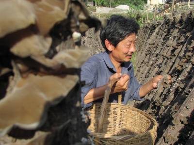 9月11日下午,十堰市郧县谭家湾镇黄畈村村民肖大斌正在木耳种植基地摘木耳。据肖大斌说,他家种植木耳共用椴木1万余根,因前期光照好,后期雨水充足,适合木耳生长,价钱又可观,今年有望收入二十余万元。(十堰市郧县新闻中心曹忠宏摄)