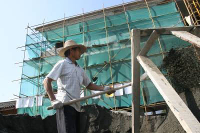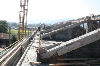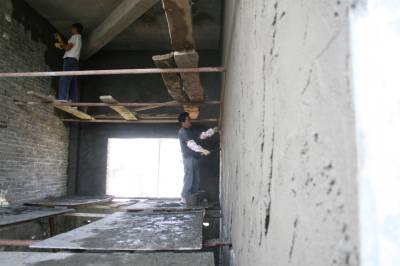 本报视界网签约摄影师颜义众:9月11日,竹溪县蒋家堰镇佛台小学三层教学楼主体已完工,工人正在加紧施工,力争11月份交付使用,让学生住上抗7级地震的教学楼。佛台小学教学楼是竹溪县”校安工程”25个项目之一,于今年四月动工,该县”校安工程”项目已全部动工建设。竹溪县是十堰市唯一被正式纳入湖北省首批6个”校安工程”项目试点县,该县为把工程做好,将”校安工程”纳入今年政府承诺为民办好的”十件实事”,运行一套规范的管理程序,并组织专班对建筑材料、工程进度、资金使用情况进行检查,力保”校安工程”高质量、按时完成。据悉,这25个项目总面积达29350平方米,投资规模3536万元。年内将全部完工,12000名学生将住进抗7级地震的教学楼。