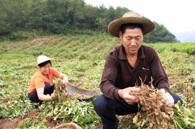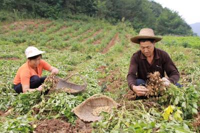 竹山花生产业助农致富(图文)竹山县宝丰镇中心学校朱本双电话:13177481456邮编:442213电子信箱:zsbfzbs@126.com昨日,竹山县宝丰镇喻家塔村五组村民王友(右)夫妇趁晴天采摘花生。今年,该县依托当地土壤、气候等自然条件均适宜花生生长的优势,以花生深加工为突破口,建立”企业得原料、农民得实惠”的产业化运作模式,全县花生播种面积已达15万亩,其中种植面积在万亩以上的乡镇有7个,落实种植示范样板48个。