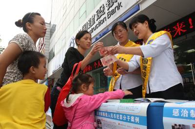 教市民识假币9月11日,建行员工在随州市城区教教市民识假币。当日,随州地区启动假币宣传月活动,金融机构228多个网点向社会各界宣传反假币知识。据了解,今年1至6月底,随州金融机构共收缴假币15万多元。本报视界网杨文明摄