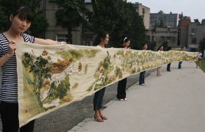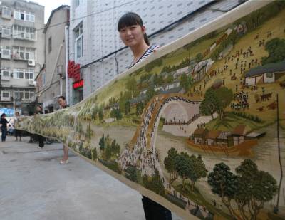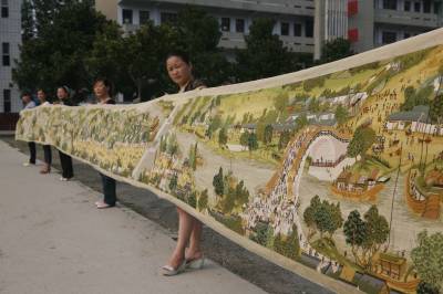 > 襄樊8女绣出22米长《清明上河图》