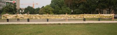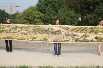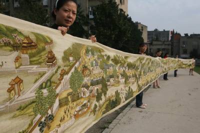 9月13日,湖北省襄樊市铁佛寺社区的张红建和7名好友,展示了她们共同创作的巨幅十字绣《清明上河图》。据了解,张红建和7名爱好十字绣的好友,花费21880元购买材料,历时11个月的辛勤绣制,用400余万针完成了这幅长22米、宽0.76米的巨制十字绣。该幅图案上面有人物814人,牲畜83匹,船只29艘,房屋楼宇30多栋,车13辆,轿8顶,桥17座,树木180棵。她们将把这幅作品寄到上海清洗、装裱,计划送到上海世博会上展览,并准备申报吉尼斯世界纪录。