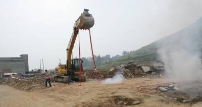 本报视界网签约摄影师颜义众通讯员曾晨万亿:15日9时,竹溪县中峰镇长岭村9组”谷竹高速”公路施工点鞭炮、礼花齐放,谷竹高速公路第33标段举行清理路基开工仪式,之后,工程队正式对高速公路路基进行平整。标志着”谷竹高速”公路竹溪段正式开工建设。据悉,谷高速公路第33标段,东起竹溪县城关镇大裕沟村、西至蒋家堰镇民主村,全长12.3公里,总投资2.7亿元。由中交二公局中标建设。第33标段建设指挥部于12日成立。谷竹高速公路全长226.46公里,总投资190.87亿元,设计时速80公里,双向四车道,建设工期为48个月。东起谷城县石花镇,与银福高速公路襄樊至十堰段相接、直达武汉;西接鄂陕交界处的罗汉垭附近,与在建的陕西平利至安康高速公路相接、直达西安,途径谷城、保康、房县、竹山和竹溪5县,是国家和湖北省规划的”六纵五横一环”骨架公路网的重要组成路段。 谷竹高速公路竹溪段途经县河、水坪、城关、中峰和蒋家堰五镇,44个村,38.78公里,其中,互通2个、服务区1个,省界收费站1个。2009年11月开始筹建,今年5月18竹溪段征地拆迁工作全面完成,9月12日首位拆迁户自主建房搬入新居。据悉,谷竹高速公路第33标段确立了5个施工区作业点,现已全面开展路面清理工作。