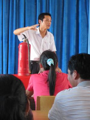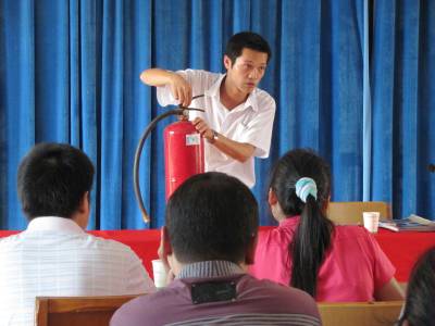 9月15日下午,十堰市防火安全委员会宣教员正为郧县梨花村酒业公司职工讲消防安全知识。为促进消防宣传”六走进”(进社区、进学校、进企业、进农村、进机关、进家庭。)工作的深入开展,十堰市消防协会指派专业宣教员免费到各地授课,以达到”人人参与消防,人人受到教育”的目的。