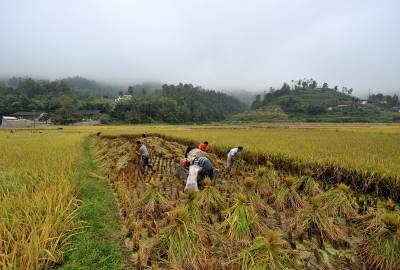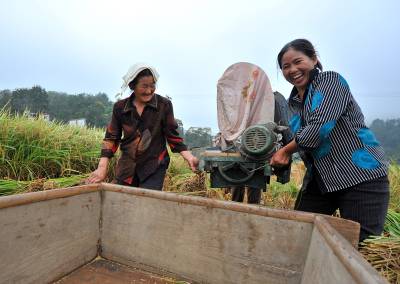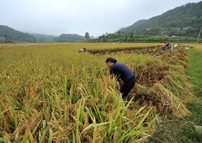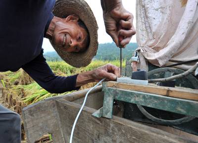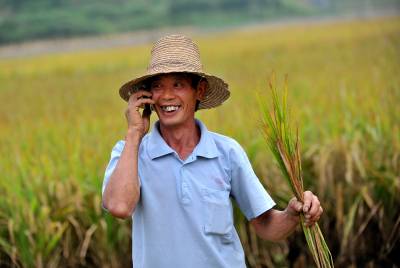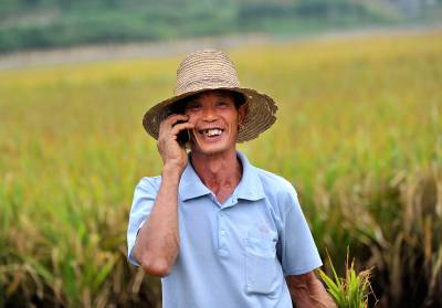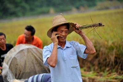 9月16日,宣恩县珠山镇卸甲坝村的农田里,一位正在收割水稻的农民把电话打给远在千里之外的福建打工的孩子,告诉他家里水稻喜获丰收。只有34万人口的宣恩县常年在外务工人员近7万人,留守老人、留守妇女成为农业生产主力军。丰收时节,他们通过现代通信工具,与相隔千里的孩子们共同分享丰收的喜悦,激励在外的孩子好好工作。本报视界网宋文摄