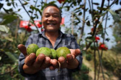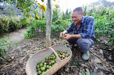 9月15日,保康县马良镇曾家垭村村民张正发在采摘核桃。张正发2007年栽植的35棵核桃树,由于管理精细,核桃树挂果率达到100%,加上套种元禾收入,亩收入达到3400元。2007年以来,保康县充分发挥自然资源优势,将把突破性发展核桃产业作为建设生态经济强县、实现农民持续增收的重要举措来抓。截至目前,该县已累计投资1.5亿元,新发展核桃基地14万亩,全县核桃面积达到了20万亩。2007年栽植的第一批优质核桃今年喜获丰收,核桃收入成为当地群众增收的一条新途径。(本报视界网杨韬摄)