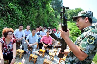 2010年9月16日,湖北省宜昌市夷陵区委统战部、区人武部和区工商联等部门联合组织40多名各民主党派成员、无党派人士和非公经济代表等各界人士,开展”情系国防”教育活动,共筑爱国拥军的”钢铁长城”,迎接9月18日第十个全民国防教育日的到来。本报视界网张国荣摄