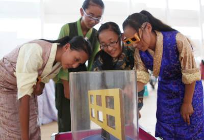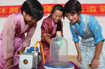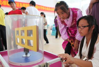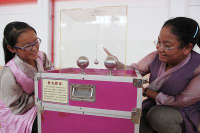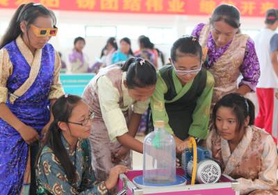 ”用3D的眼镜看恐龙和海洋生物,很立体很有趣!”昨日下午,洪山区科协将科普大篷车这一流动科技馆开进了西藏中学,让同学们感受到科技的神奇。在”鲜花跳舞”科普展品前,高一(1)班的桑旦卓玛拍了拍手,鲜花就欢快的跳起了舞,周围的同学睁大了眼睛争相拍起手来。卓玛表示是第一次看科普展览,以前在书本上了解过,但是今天自己动手去体会科学模具,让本来高深的书本知识变得亲切多了。来自西藏山南地区的小边巴高兴的说,这次科普进校园让她真正”玩”了一把科学,化死板的知识为娱乐,很有意义。此次展览共展出科普展品22件、三维科普展板20块。在闪电盘、概率、鼓风吹球等模具前,同学们都玩的津津有味。洪山区科普协会主席董祖恩说:”将科普大篷车开进西藏中学,就是让同学们将书本知识经过实践体验融会贯通,感受科技的奥秘。”据悉,本月18日到24日是全国科普日,洪山区科协在此期间将开展”科普进社区”等15项活动。