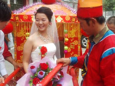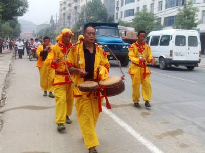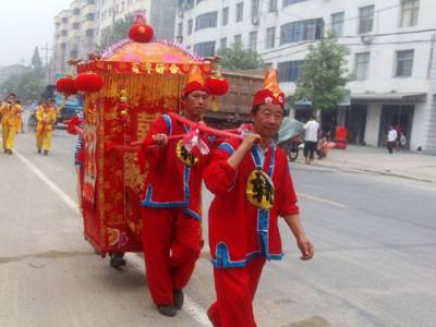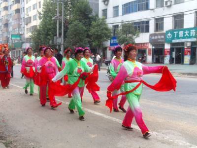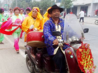 花轿迎亲民俗助兴丹江口民俗民乐表演队为农村婚事添彩减负荆楚网丹江口16日讯(通讯员许光泽)9月16日上午,丹江口市丁家营镇一支由摩托开道,花枝招展的秧歌队伴护,彩车、旱船簇拥着一顶大红花轿的迎新队伍,吸引了来往行人和沿街居民的翘首关注。据了解,为婚庆助兴添喜的是当地今年大放异彩的民俗民乐表演队。他们主要是四十岁以上的中老年妇女组成。自去年夏季以来,每当夜幕降临,她们结伴相约来到丁营大药房前,在几位民乐爱好者吹打的唢呐锣鼓声或大药房主人肖青海的电脑播放的流行音乐伴奏声中,路灯下,她们翩翩起舞,自娱自乐。夜晚秧歌队的兴起,让过去无所事事的中老年人丰富了”夜生活”,也让一些熬夜打牌,沉湎于赌博的”牌友”告别牌桌,奇迹般地”金盆洗手”,自觉地加入到夜晚秧歌队。去年,丁家营镇中老年秧歌队最盛时期一度达到500余人。民间秧歌既为参与者提供了强身健体的去处,也为农村乡镇奉献了一道靓丽的精神文化”大餐”。今年因街舞异军突起,虽然跳秧歌的人数有所减少,但中老年妇女仍然对此情有独钟。夜幕下,和着高昂的唢呐和欢快的锣鼓声或悠扬的流行乐,跳秧歌仍是该镇中老年人欲罢不能、心驰神往的活动。去年秋冬季,在当地政府的扶持鼓励下,丁家营镇民间秧歌的创始人——身残志坚的徐长乐为秧歌队添置了红绫、彩扇、腰鼓等道具和服装、彩饰,制作了彩车、旱船、狮子、河蚌等民俗器物,一些民俗表演爱好者自发加入,让一度濒临失传的民俗表演在当地悄然兴起。春节期间,他们沿街起舞,为节日添喜增色。一些商铺开业,他们应邀表演助兴,为商家喜添”头彩”,主人家或送几包香烟,或多或少打发些”彩头”,不仅增添了欢庆的气氛,也为民乐民俗表演队赢得了”商机”,为表演者增加了收入。今春,徐长乐又请工打造了一顶大红花轿,民俗民乐秧歌队对外有偿服务。主要承接商铺开业、婚丧嫁娶、单位庆典等。他们收费公开、低廉,每次一两千元的费用大大降低了农村红白喜事及单位庆典的高额支出,更重要的是营造的欢快场面是其他形式无法替代的,赢得了一些求异求新年轻人的青睐和企事业单位的信赖。据了解,今年以来,仅徐长乐的民俗秧歌表演队已为当地操办各类庆典活动达到30余次,为主办方节省开支十余万元,深受镇民的欢迎。图1:大红花轿抬新娘图2:花枝招展的秧歌队助兴图3:彩车旱船添喜图4:摩托开道(驾车人即徐长乐)图5:迎亲唢呐锣鼓图6:摩托车带着新郎前行图7:美丽新娘上轿瞬间