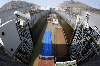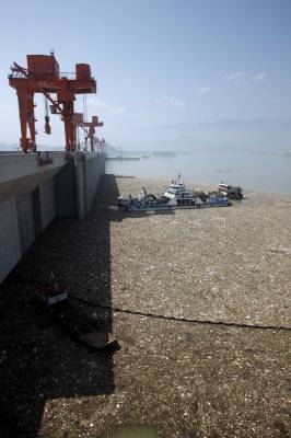 三峡工程175米试验性蓄水平稳有序2010年9月16日,上行船队进入三峡永久船闸北线四闸室。当天,三峡工程2010年175米试验性蓄水启动第六天,坝前水位已升至162.86米,按照国务院确定的”安全、科学、稳妥、渐进”的原则,计划在10月内达到175米,标志着三峡工程从防汛阶段全面转入蓄水阶段。今年是三峡工程第三次175米试验性蓄水。经国务院批准曾于2008年和2009年,三峡工程进行了两次175米试验性蓄水,分别蓄至172.8米和171.43米。文振效摄