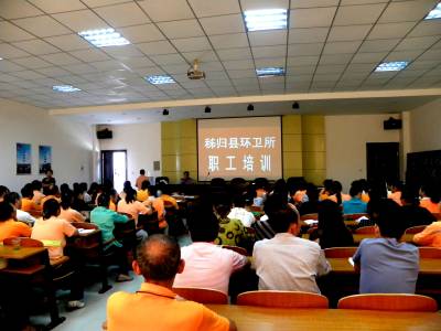 9月14日、15日,秭归县环卫所邀请县劳动保障就业局培训中心的教员和交警,为城区百余名环卫工人授课,讲授职业道德、工作规章、技能技巧和道路交通安全等相关知识,让环卫工人学会”科学工作、安全工作、文明工作”。本报视界网王爱平摄