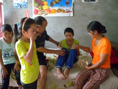 9月17日,湖北郧县谭山镇乌屿小学六年级的师生把四百多元捐款送到王虎家中。六年级学生王虎得了急性化脓性脑膜炎、继发性癫痫,在十堰太和医院医治了一个多月,花去医药费2万多元,医治无效,全身瘫痪、不能说话。现在只能在家呆着,父母准备借钱把王虎送到武汉的医治。看着王虎痛苦挣扎的样子,师生们都忍不住掉下了眼泪。师生们期盼着王虎同学早日康复和他们一起学习。