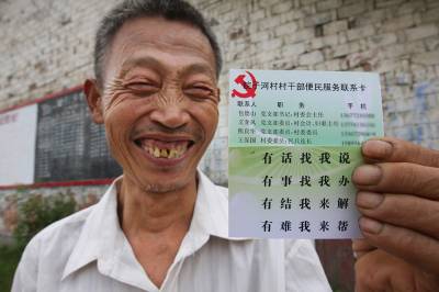 小卡暖民心”有话找我说,有事找我办,有结我来解,有难我来帮。”9月15日,随县柳林镇院子河村委会干部,将精心制作的一张张便民服务卡送到村组农户手中,深受当地村民欢迎。本报视界网杨文明摄