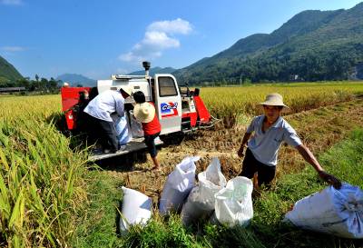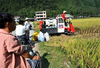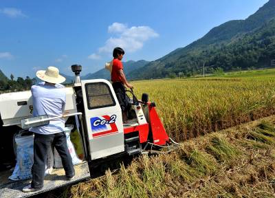 17日,宣恩县高罗乡麻阳寨村的稻田边,一台崭新的收割机开进稻田开镰收稻。这块稻田是省国土资源厅作为”616工程”对口帮扶宣恩县、实施的土地整理项目中的一片。据了解,自2008年来,省国土资源部门在该县实施低丘岗地改造、土地整理项目投资已突破1亿元,项目实施面积突破7万。本报视界网宋文摄