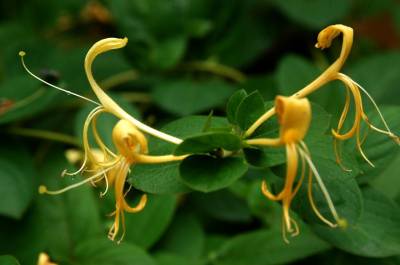 保康县境内地貌复杂,高低悬殊,各地气候差异较大,素有”高一丈,不一样,阴阳坡,差得多”之说。保康县的气候,适宜四季金银花生长。这是笔者9月17日,在该县万年山上拍的秋季金银花。(本报签约摄影师宋永权李明江)