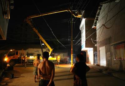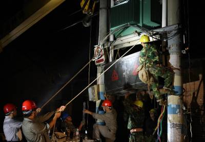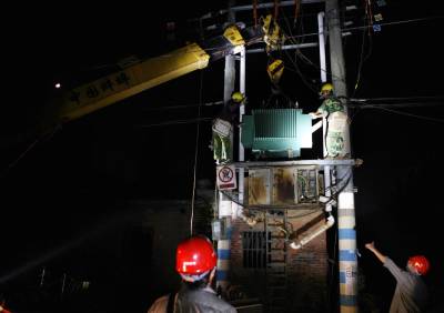 9月17日凌晨,湖北咸宁供电公司配电中心员工在白茶社区换装配电柜。中秋临近,南方气温依然偏高,居民家中空调的使用频率比往年增幅不小。16日傍晚,咸宁市白茶社区一台400千伏安的公用配电变压器因低压配电线路故障而烧毁。咸宁供电公司配电中心获悉后,立即向配电变压器生产厂家求援,同时组织抢修器材和15人的抢修突击队连夜抢修。经通宵达旦的奋战,17日早晨7时30分恢复了该社区270余户居民的正常供电。
