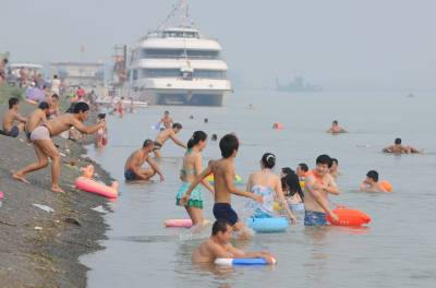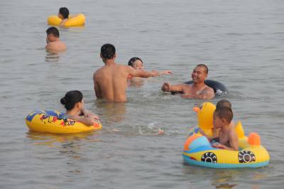 > 秋老虎袭击襄樊,市民亲水降温应对