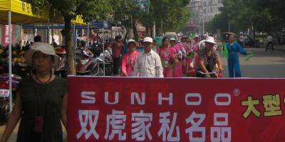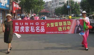 两节将至,安陆商家销烟起为迎接中秋、国庆两节的来临,9月18日,双虎家私特请腰鼓队在涢城游街助威宣传促销。这天,参与促销宣传的还有近10家商家。国庆、中秋既是旅游黄金周,更是商家的黄金周,商家各尽所能抓住商机。签约摄影师:王代金