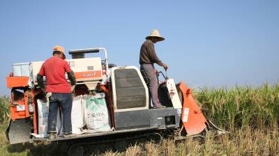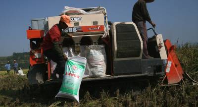 本报视界网签约摄影师颜义众:9月18日,水稻收割机正在竹溪县蒋家堰镇黄土岭村收割稻谷。一位村民说:”收割机收一亩水稻130多元工钱,还把稻草轧碎还田,省时、省力、省钱,收割完后我们把稻谷搬到路边再用三轮车很轻松就运回家了。”竹溪县水稻种植8.3万亩,进入收割期,留守的妇女和60岁以上的老人成为秋收主力军,为缓解劳力荒,该县联系来浙江、江苏等地收割机10余台;同时购进半机械化式水稻脱谷机3200台投入农机销售点,为小块田机收做准备。截止目前,全县已收割水稻3.8万亩。