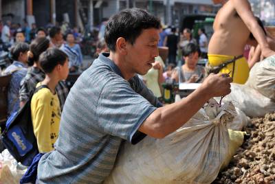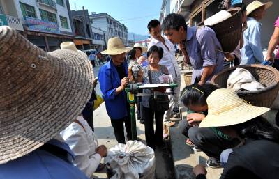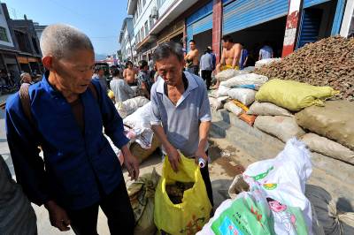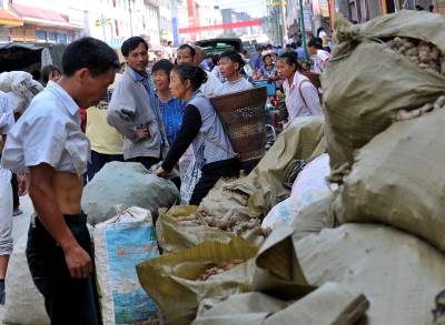 9月18日,宣恩县高罗乡集镇火爆的药材交易场面。当天,成交的主要中药材——白术,刚从地里挖出来的公斤价达12-13.8元,而这种药材平均亩产则达到400公斤。恩施州素有”华中药库”之称,全州常年中药材留存面积达140万亩。金秋时节正值收获季节,各乡村药材交易市场开始升温,全国各地药材经营商云集土苗山乡,为当地药农源源不断地”送”来现金。本报视界网宋文摄