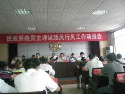 竹溪县民政局政风行风评议工作正式启动(图)9月19日上午,竹溪县民政局政风行风评议在八楼会议室正式拉开序幕。全县民政系统130多名干部职工参加了会议,县行评办领导亲临会场进行指导。据悉:该局本次政风行风评议的总体目标是:全面推进全县民政系统政风行风建设,行业不正之风和腐败现象得到有效遏制,群众反映的突出问题得到妥善解决,干部队伍综合素质得到明显提高,机关工作作风得到进一步转变,民政部门执行力得到进一步提升,加快民政事业发展,让广大民政对象得到实惠,确保政风行风建设取得新的更大的成效。评议内容是10个方面,即:促进发展方面;执行力建设方面;公开透明方面;服务和效率方面;反腐倡廉建设方面;强化组织领导方面;依法行政、文明执法、公正执法方面;执政为民,维护人民群众利益方面;行政执行力和民政工作目标任务落实方面;问题整改方面。方法和步骤:评议工作从9月份开始,11月底结束,共分四个阶段。宣传发动和自查自纠阶段;集中整改阶段;集中测评阶段;考核总结阶段。会上,局党委书记、局长王世汉作了总体动员;县政风行风评议领导提出了具体要求。为确保此项出成果,见实效,成立了领导小组,分设了综合组,信息宣传组、材料组、案件调查组。签约摄影师:罗立政